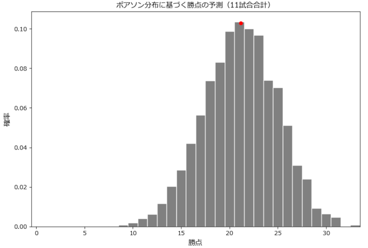 さらに、この計算を鹿島の残り11試合すべてに適用すると、次の分布が得られる。
