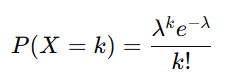 ポワソン分布の確率は次の式で表されます。